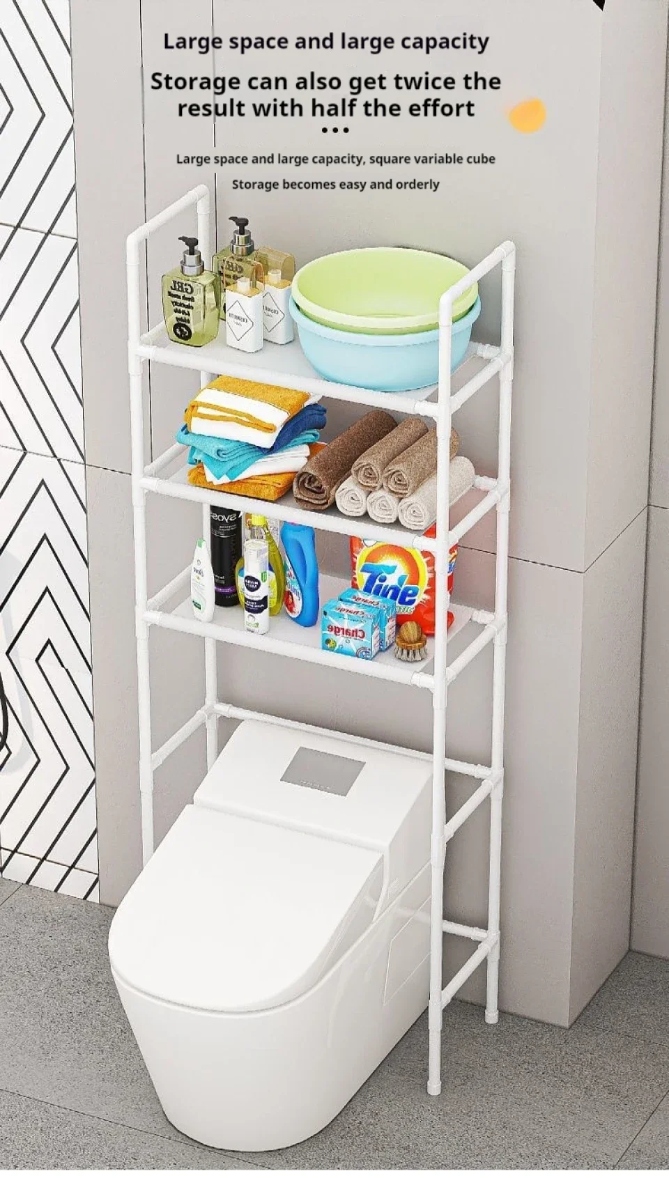 Vertical Space Optimization – Utilizes the overlooked area above the toilet for extra storage, ideal for small bathrooms.