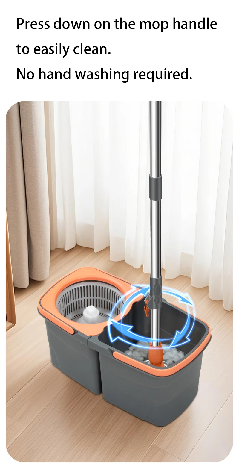 - Cleaning System: Spin + wring, no hand-squeezing required