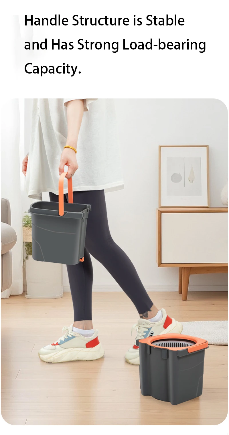 - Hands-Free Wringing System: The bucket’s built-in wringer removes excess water automatically — no need to squeeze the mop by hand, keeping your hands clean and dry.