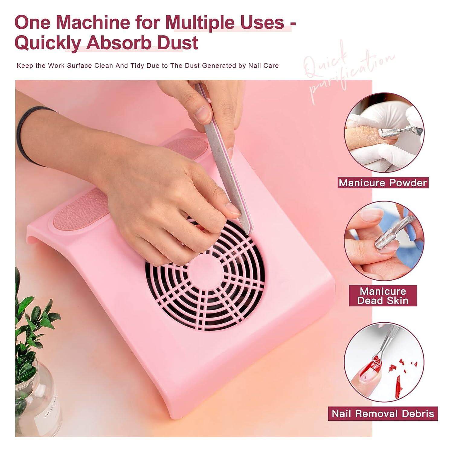 Experience efficient and convenient nail cleaning with our Nail Dust Collector. Made with premium materials like PVC leather and acrylic, it's durable and eco-friendly. With its powerful 40W suction cleaner, it effectively collects dust while you file or polish nails, maintaining a clean workspace. The built-in fan absorbs nail debris, ensuring a dust-free environment for both professionals and DIY enthusiasts. Its ergonomic design includes a comfortable hand pillow and easy-to-use ON/OFF switch. Perfect for nail salons, schools, or personal use, it's easy to maintain with replaceable filters and reusable collection bags.Features: