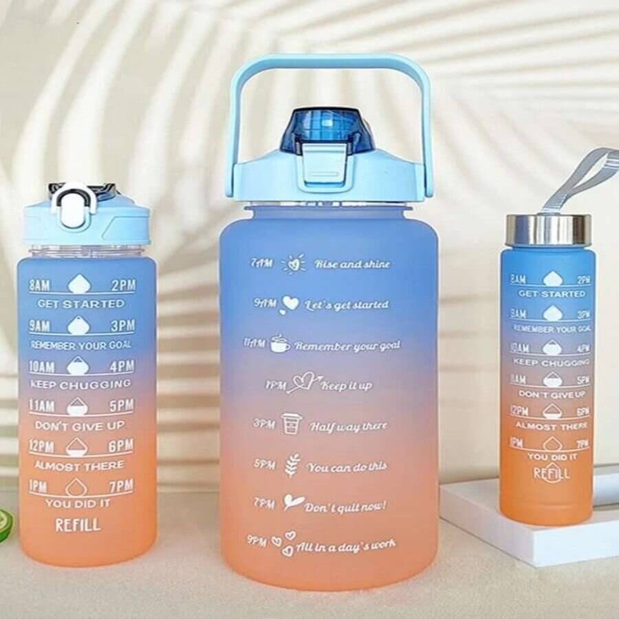 Elevate your hydration game with the Set of 3 Motivational Water Bottles. Furthermore, This versatile set includes three distinct sizes, each designed to keep you motivated and on track with your daily water intake. Moreover, With a stylish design and practical features, these bottles are perfect for anyone looking to improve their hydration habits, whether at home, at the gym, or on the go. In addition, Each bottle features a convenient pop-up lid and a motivational design to encourage regular water consumption.