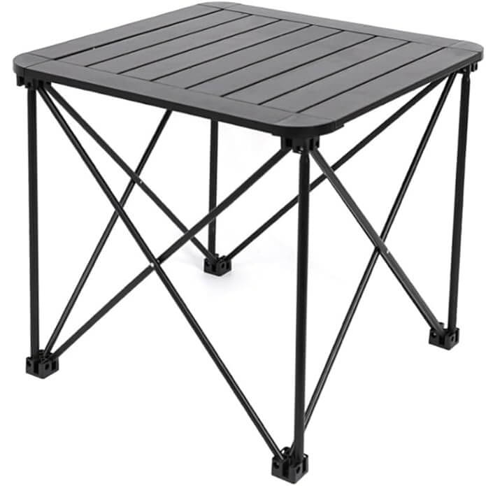 • Roll-Up Tabletop Design: The slatted aluminum tabletop rolls up easily, making it compact and ideal for on-the-go use.