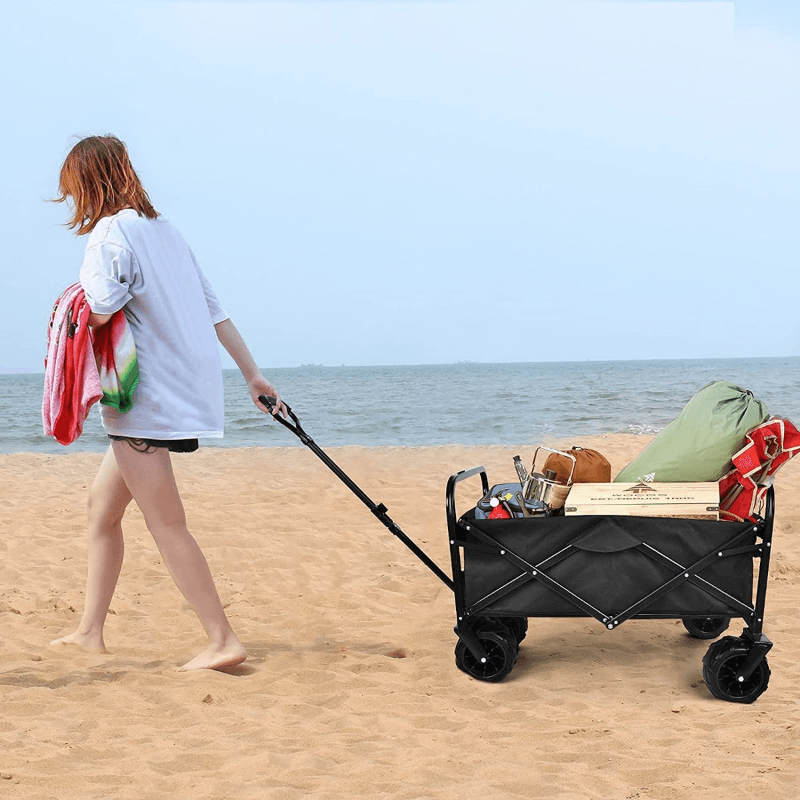 Beyond the beach, this foldable trolley is your versatile outdoor companion. Use it for picnics, camping, or any outdoor activity where convenience and style are a must.