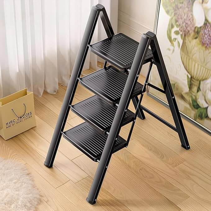 Anti-Slip Pedals & Feet: Each step features deepened non-slip grooves for better grip, while the anti-slip rubber feet keep the ladder stable and prevent floor scratches.