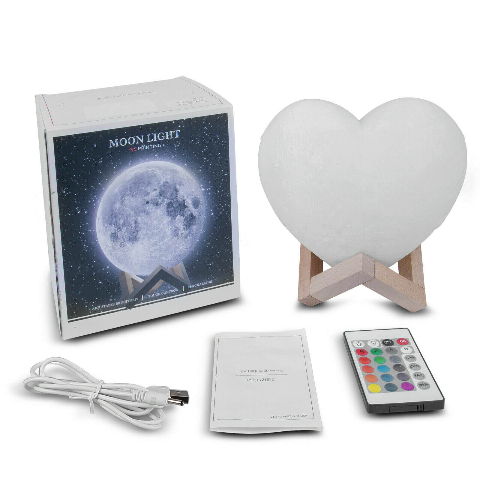 - 1 x Heart Shaped Colour Changing Large 3D Moon Lamp