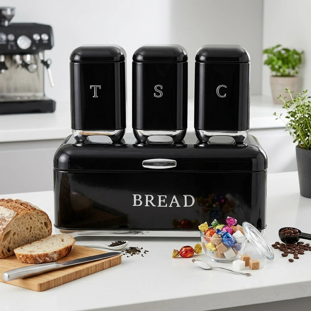 Organising your countertop while keeping baked goods fresh is simple with the 4-Piece Retro Metal Bread Box and Canister Set, which provides a dedicated, coordinated home for your kitchen essentials. This stylish storage solution helps clear clutter by grouping your most-used items in one central, easy-to-access location.