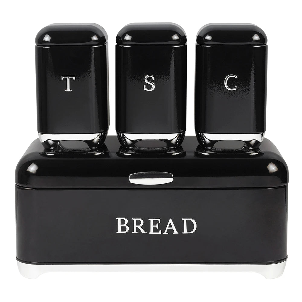 4-Piece Retro Metal Bread Box and Canister Set