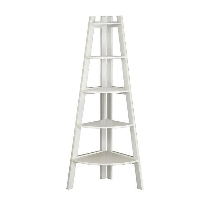 Maximize your home’s storage potential with the 5-Tier Ladder Corner Shelf, a modern and stylish solution for organizing and displaying items in tight spaces. Furthermore, designed to tuck neatly into corners, this shelf unit allows you to make full use of your available space without sacrificing elegance. In addition, its fan-shaped design and five open shelves create ample room for books, decorative items, plants, or personal treasures. Moreover, the contemporary white finish and sleek structure make this corner shelf a beautiful addition to any room, thus blending seamlessly with various home decor styles.