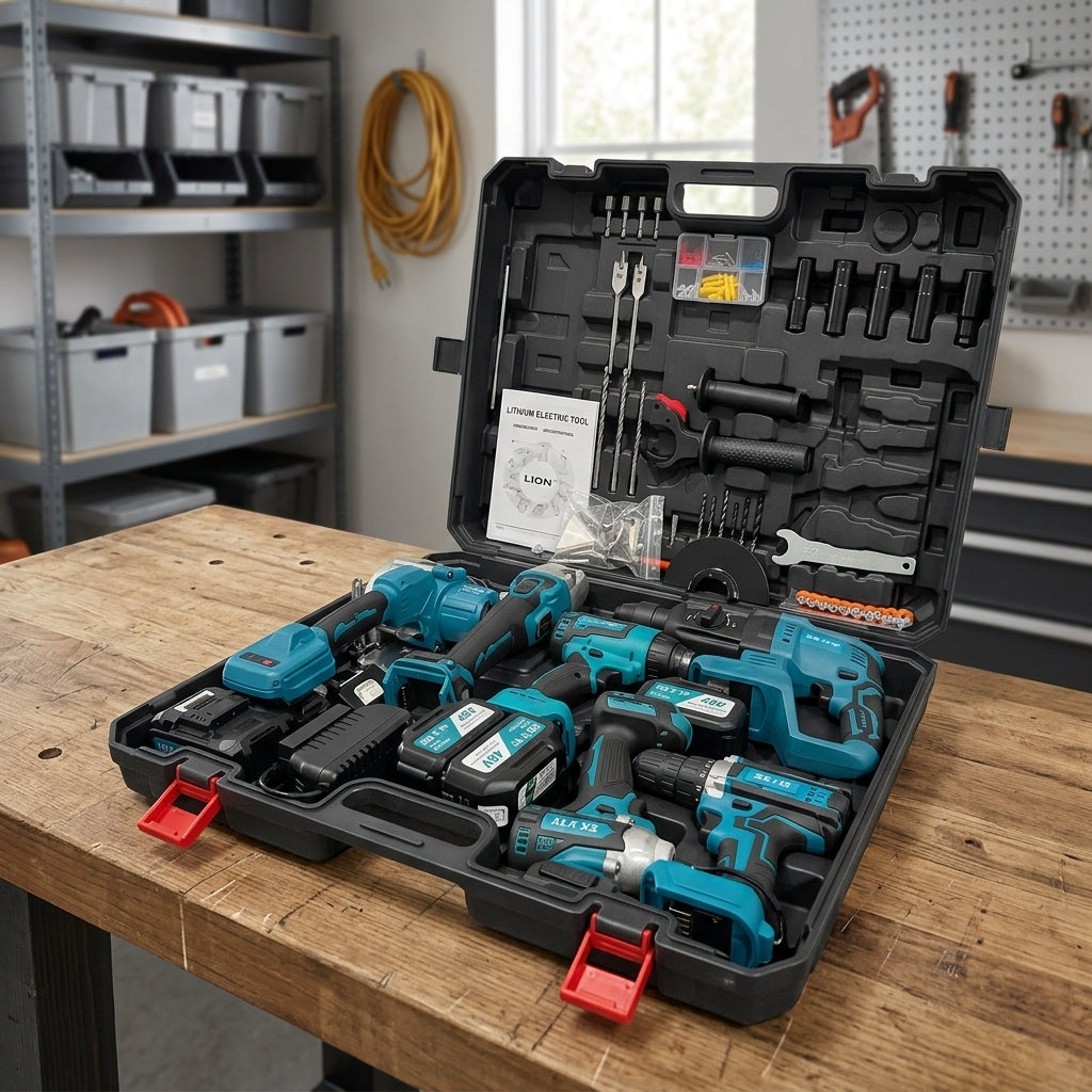 The 6-piece power tools set cordless brushless drills is built for versatility and durability. Each tool in the set is powered by a rechargeable lithium-ion battery, giving you the freedom to work anywhere without relying on power outlets. The quick-change chuck system and included drill and driver bits make switching tasks fast and seamless, while the sturdy construction ensures the set withstands regular workshop or job site use. This complete kit is ideal for DIY enthusiasts, carpenters, and professional contractors alike.