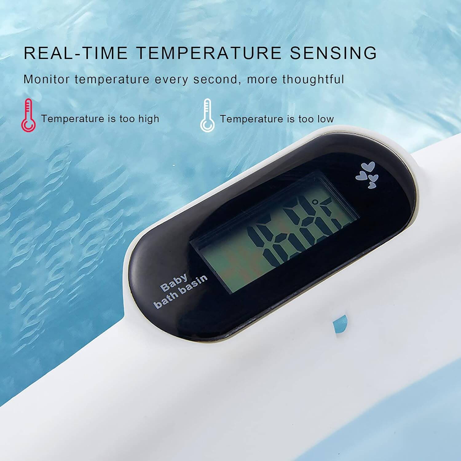 • Real-Time Temperature Sensing: Equipped with an intelligent temperature sensing system to help parents monitor and adjust water temperature.