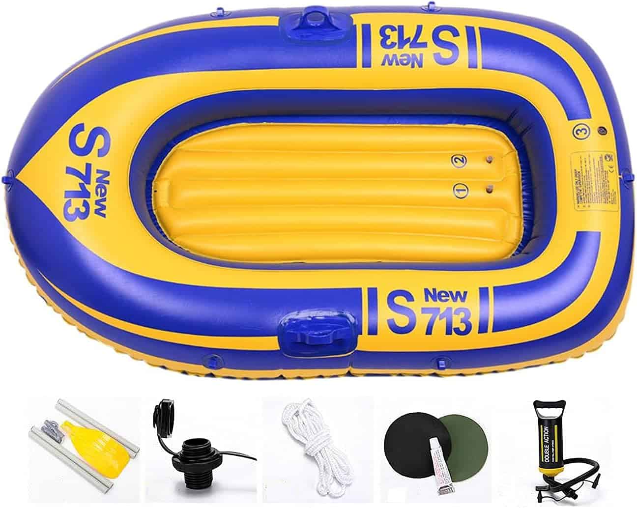 • Accessories: usually includes aluminium or alloy oars, pump, repair kit, sometimes fishing rod holders or rope line
